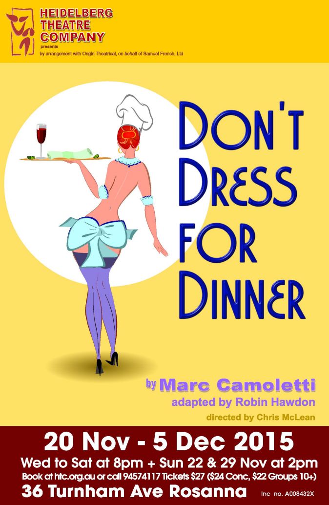 “Don’t Dress for Dinner”: Bernard’s plans for a lustful weekend with his mistress come crashing down when Jacqueline, his wife, decides to stay home rather than visit her mother. Bernard’s friend, Robert, becomes an accomplice in the increasingly implausible tangle of excuses and explanations, when Suzette or was it Suzanne? arrives for dinner ….and a whole lot more! Camoletti takes us through more twists and turns than either Bernard or Robert ever anticipated.